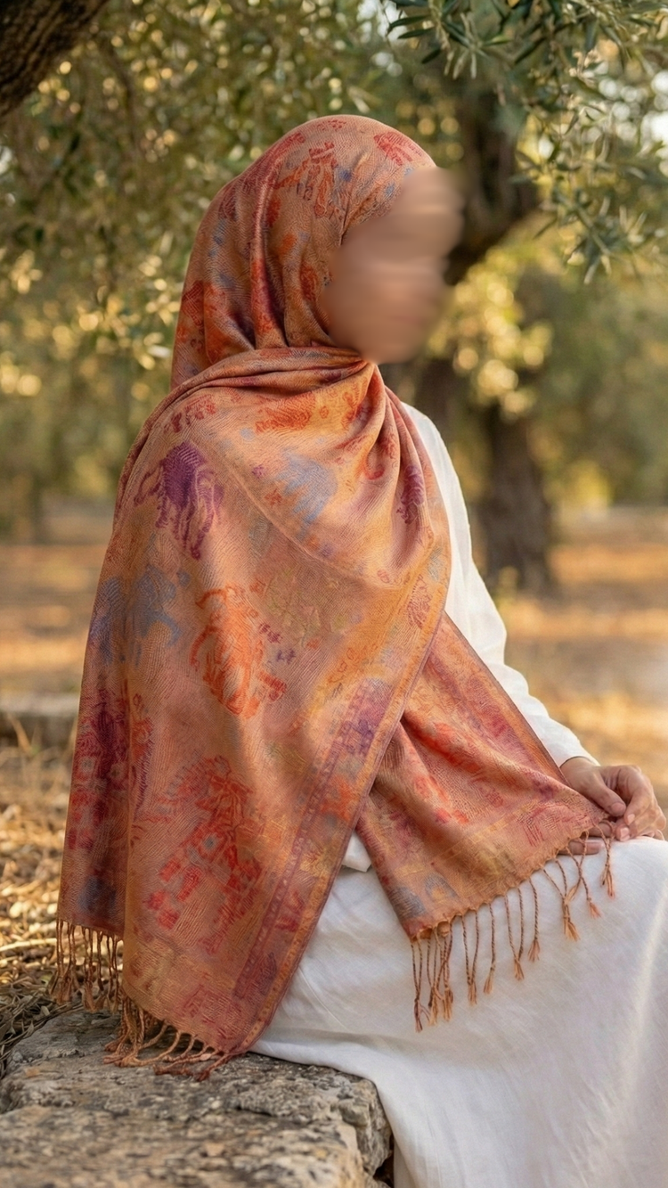 A warm interplay of earth tones and spirited charm, Saffron Safari brings vibrancy, adventure, and a golden glow to any look. Woven in a balanced blend, this hijab drapes effortlessly while showcasing stylized elephant motifs layered in copper, burnt orange, and soft violet tones. Finished with delicate fringed edges, it feels artistic yet grounded—an elevated essential designed to express your personality without overpowering.